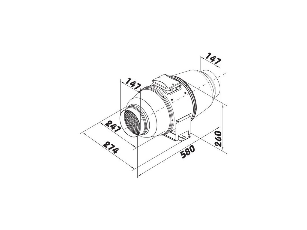 Odhlučněný potrubní ventilátor TT AP s průměrem 150mm a výkonem 405/555 metrů krychlových za hodinu. Dvourychlostní motor s kuličkovými ložisky.