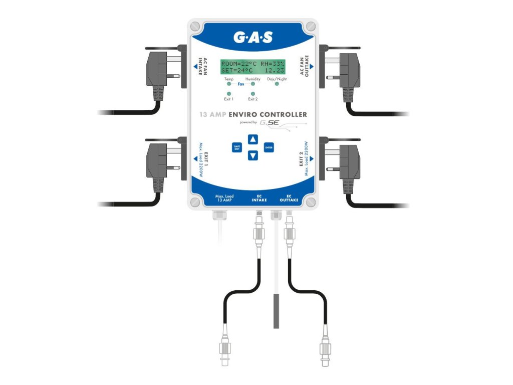 Kromě ovládání ventilátorů je ovladač Enviro Controller V2 vybaven dvěma dalšími plně programovatelnými zásuvkami, které mohou ovládat další vybavení pěstební místnosti, jako jsou ohřívače, zvlhčovače, odvlhčovače a světla.