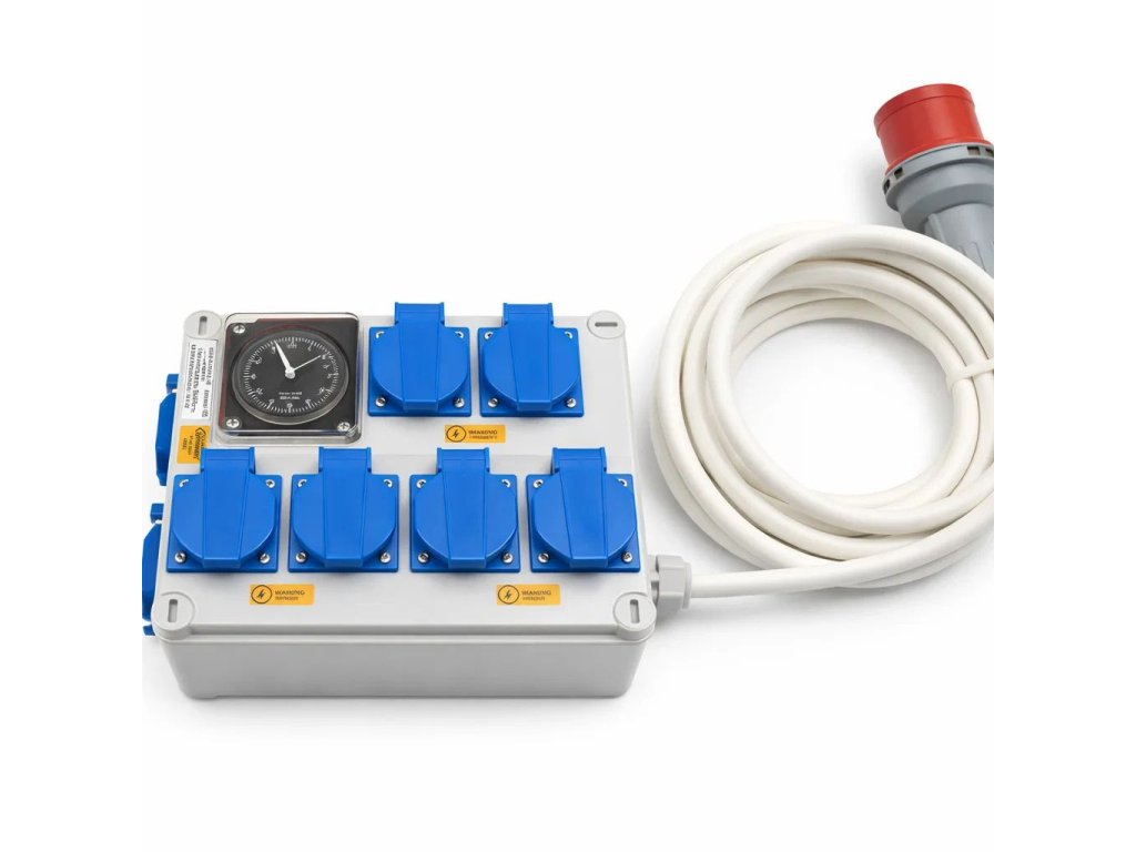 Zapínání a vypínání zásuvek probíhá prostřednictvím výkonového stykače, který je dimenzován na spínané výkony této rozvodnice. Integrovaná ochrana proti požáru zajišťuje bezpečnost provozu – při poruše dojde k vynucenému vypnutí stykače a odpojení spínaných zásuvek.