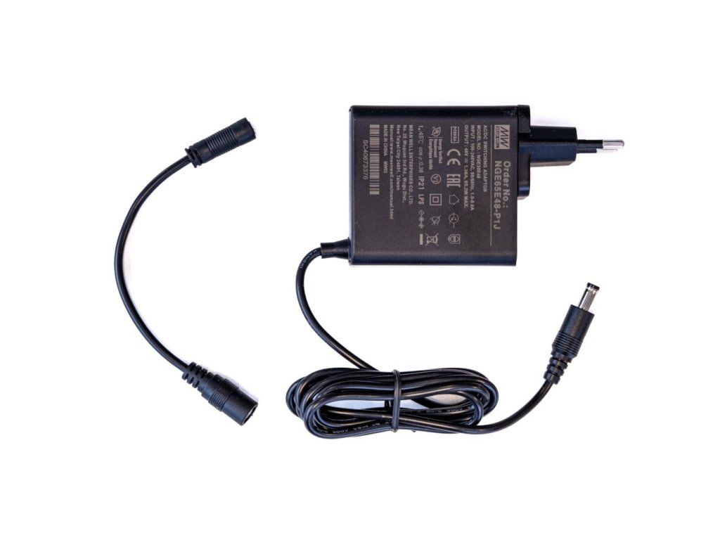 Zásuvkový zdroj SANlight GST65 s výkonem 65 W je dodáván včetně koncovky a adaptérového kabelu (DC na WDC19). Určen pro napájení svítidel řady SANlight FLEX II.