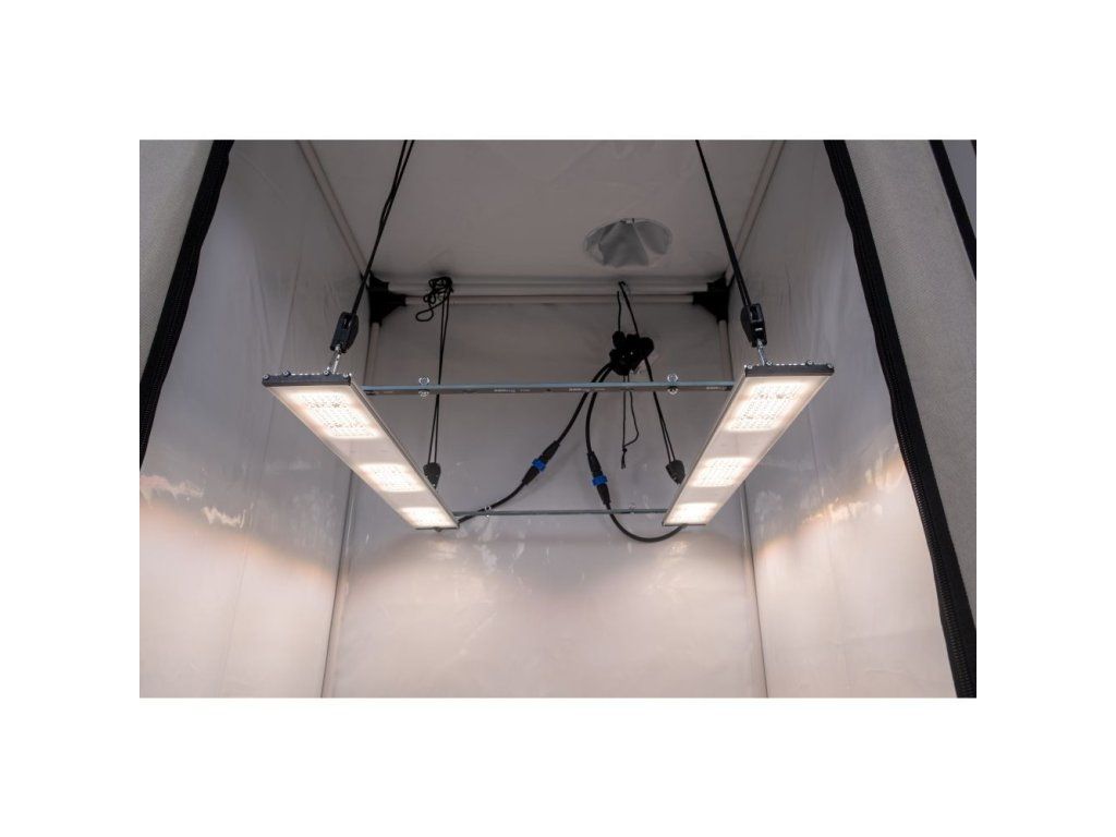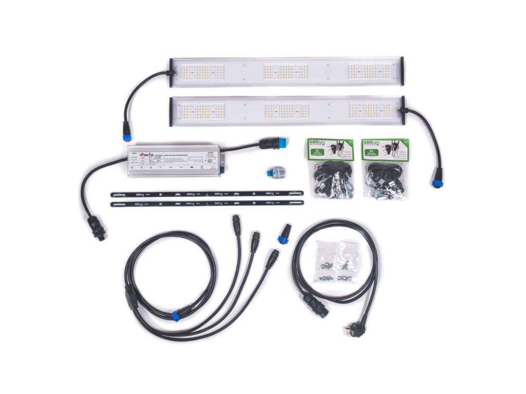 SANlight STIXX 3-80 SET obsahuje 2 třímodulová svítidla speciálně optimalizovaná pro pěstební plochy 80 cm. Poskytuje velmi rovnoměrné rozložení světla a hodí se jak pro domácí growboxy, tak pro profesionální vertikální pěstební systémy. Krytí IP68, plné spektrum a asymetrická optika 90/135° zajišťují homogenní osvětlení pro růst i kvetení. Set obsahuje vše potřebné k okamžité instalaci.
