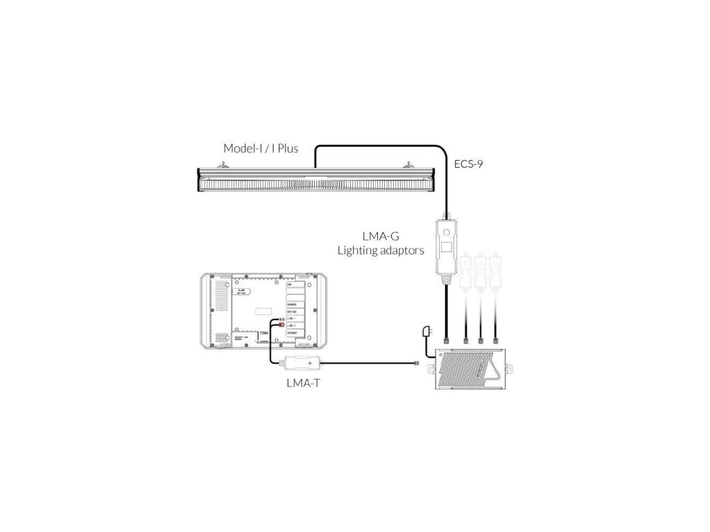 LMA-G je speciálně navržen pro použití s ThinkGrow Model-I a I Plus. LMA-G je třeba připojit k adaptéru pro ovládání osvětlení, aby bylo možné pěstebním světlům nabídnout funkci skupinového ovládání. Každé zařízení LMA-G může ovládat jednu skupinu světel./ Každá skupina světel vyžaduje jedno zařízení LMA-G.