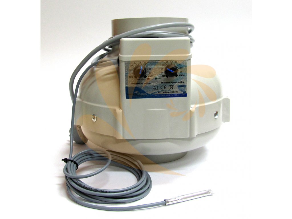 Ventilátor Prima Klima 125 CTRL 420 m3/hmá integrovanou regulaci teploty a otáček, teplotní sondou na kabelu a již zapojený énapájení. Regulace umožňuje regulovat otáčky na základě teploty monitorované sondou na 4 m dlouhém kabelu. Regulace otáček/výkonu ventilátoru je možná v rozsahu 20 - 100 % nebo vypnuto, teplotu lze nastavit v rozmezí 20 - 30°C. Pokud je teplota nižší než nastavená, řídí se výkon ventilátoru regulátorem výkonu. Pokud teplota překročí nastavenou hranici, je výkon ventilátoru zvýšen.Parametry ventilátoru Prima klima 125 CTRL 420m3/h: